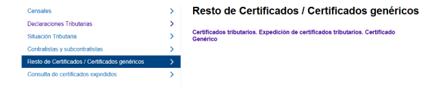 - Hacemos clic en “Certificados tributarios. Expedición de certificados tributarios. Certificado Genérico”