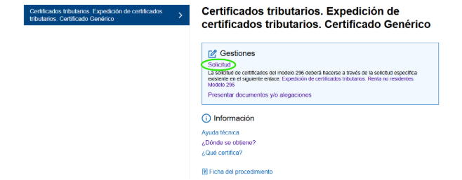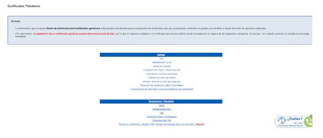 Este certificado no existe como tal dentro de los certificados de “serie” que ofrece la AEAT, por ello debemos de solicitarlo de forma manual.