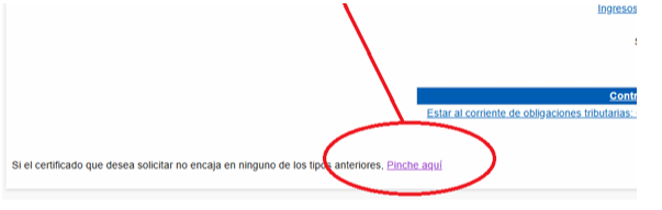 - Tenemos que ir al final de la página y hacer clic en “Si el certificado que desea solicitar no encaja en ninguno de los tipos anteriores, “Pinche aquí»