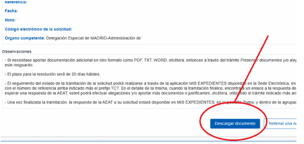 - Descargamos el Resguardo de la solicitud (opcional)