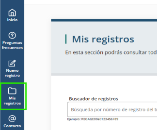 - Podemos acceder a “Mis registros” y consultar el estado del trámite