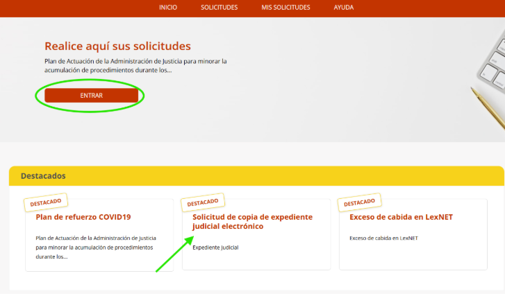 1.Entrar en la Sede Judicial Electrónica y una vez dentro pulsar en entrar, también podríamos hacerlo a través de destacados