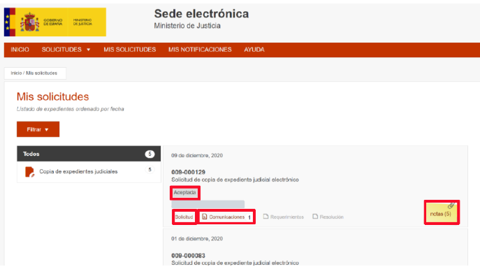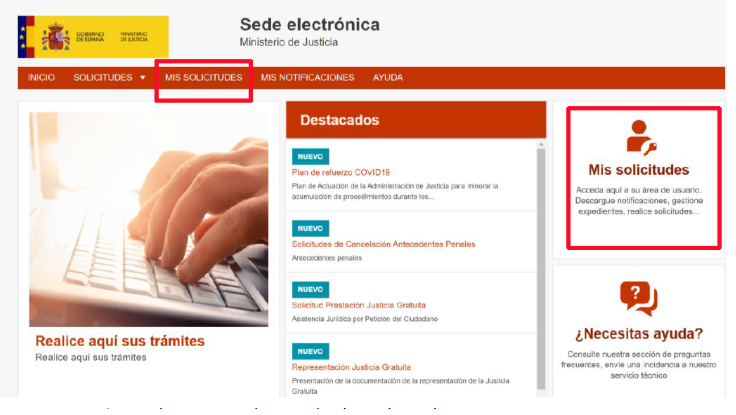 4. En la siguiente pantalla rellenaremos todo acerca de nuestro proceso y pulsaremos enviar y ya solo quedará esperar para que nos informen si nuestra solicitud está aceptada o rechazada, según el caso. Si ha sido aceptada accedemos a mis solicitudes