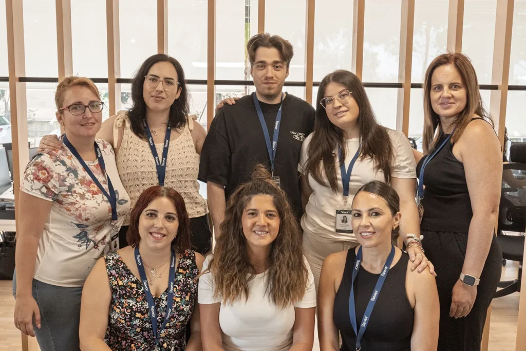 equipo de bewor posando al completo en la entrada de la oficina